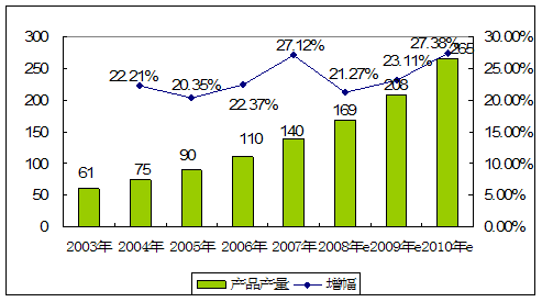 | 年份 | 产品产量 | 增幅 |