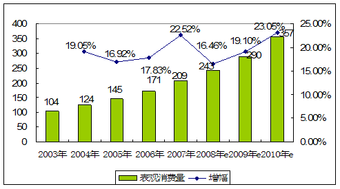 | 年份 | 表观消费量 | 增幅 |