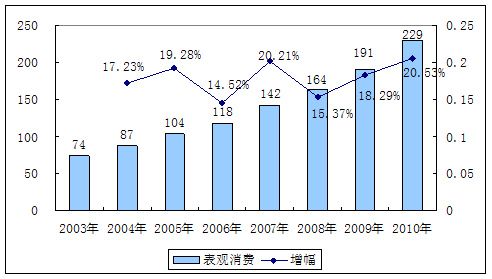 2003—2010年亚克力浴缸产品产量 分析 及预测表