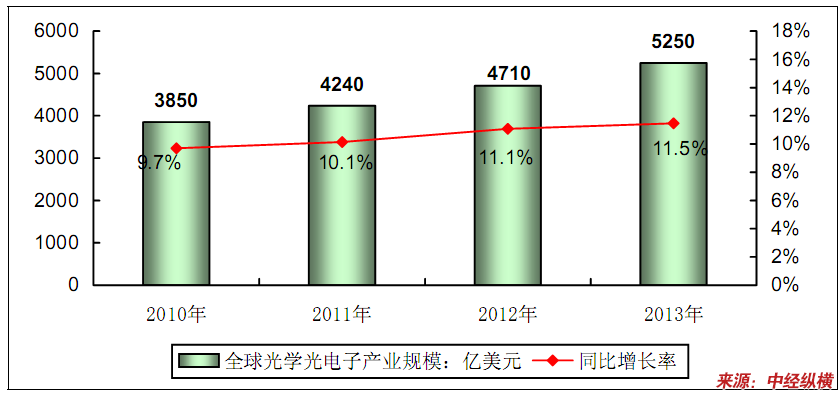 2010-2013年全球光学光电子产业规模预测
