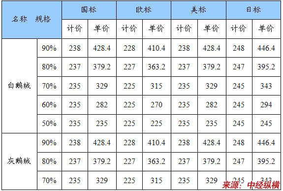 2009年5月-2010年4月白鹅绒产品主流市场价格