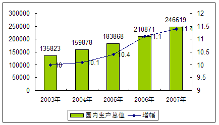 2003年-2007年国内生产总值及其增长速度