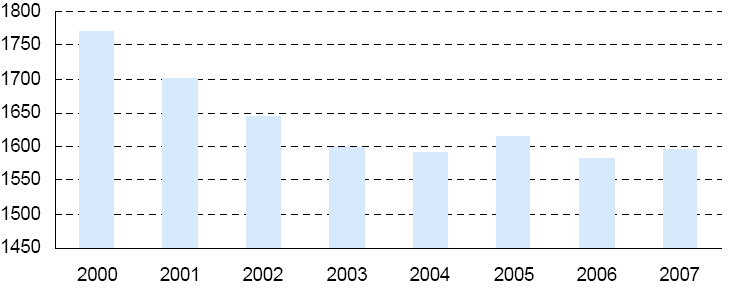从2000年开始,我国每年出生的新生儿数目呈现减少的趋势。但2003-2007年我国新生儿人数基本稳定在1580-1620万。因此预计未来每年出生的新生儿约为1600万。