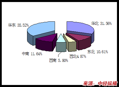 2008年钢材产量区域分布图