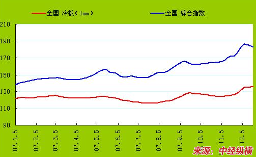 2007年国内钢材价格指数走势