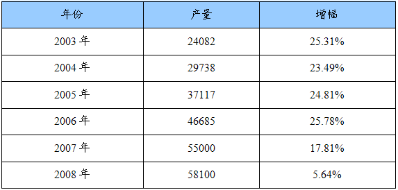 2003——2008年我国钢材产量统计