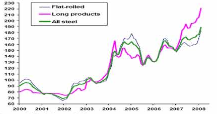 2000——2008年全球钢材价格指数