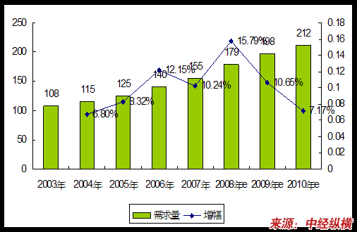 2003—2010年叶腊石产品需求量 分析 及预测图