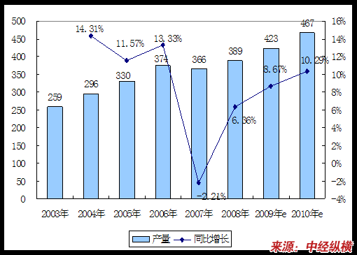 2003-2010年印花机产品产量 分析 及预测表