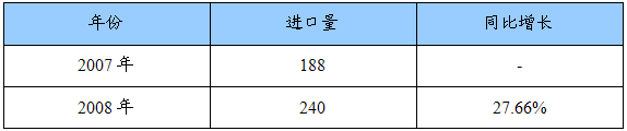 2007-2008年印花机进口量统计