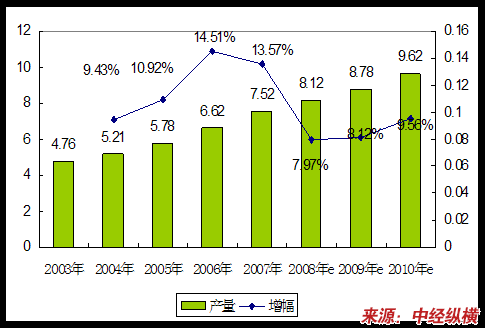 2003-2010年我国优氯净产品产量 分析 及预测表
