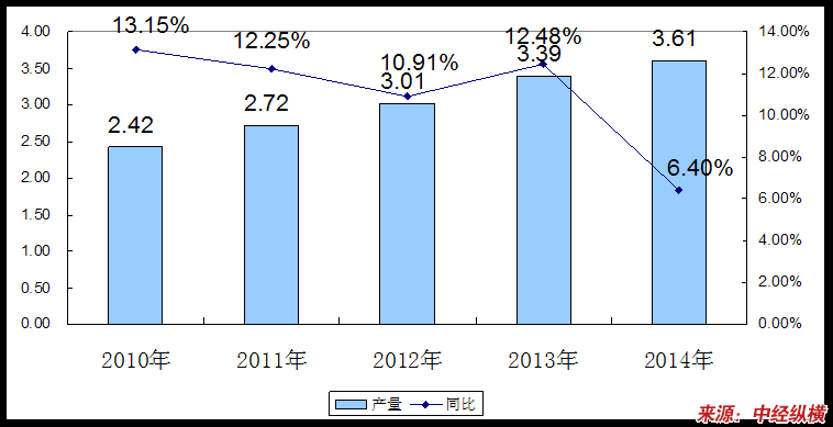 2010-2014年我国亚磷酸二氢钾产量预测图