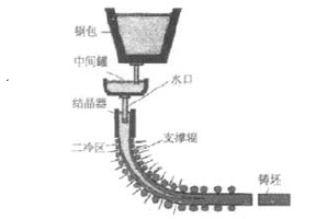 连铸的工艺过程主要包含了回转台、钢包、中间罐、结晶器、二冷水系统、夹持和拉矫机、切割机等关键设备。液态钢谁有钢包运输连铸工序,通过回转台的旋转钢包到达浇注位,钢包下水口打开进行钢水浇注,钢包浇注的钢水经过起缓冲作痛的中间罐大结晶器,钢水在结晶器内表面凝固,除结晶器后二冷水系统通过喷水使铸坯液芯逐渐变成固态,夹持和拉绞机起到支撑、矫直和拉动铸坯运行的作用,最后切割机按照定尺铸坯切割机成坯块。