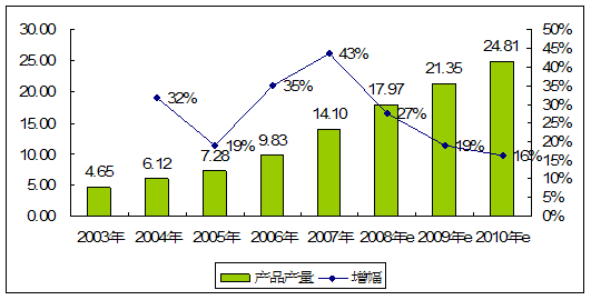 2003—2010年有机硅橡胶产品产量 分析 及预测图