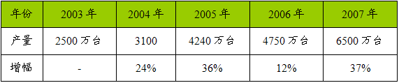 2007年,几乎所有的冰箱压缩机企业都出现了销售火爆的局面。由于国内冰箱市场较早启动,春节前后,冰箱压缩机的生产就出现了供不应求的局面,冰箱压缩机的产销量也因此迈上新台阶。2007年上半年,国内共生产冰箱压缩机约7000万台。2007年冰箱压缩机的销售保持高速增长。2007年冰箱压缩机市场火爆的原因主要有四点: