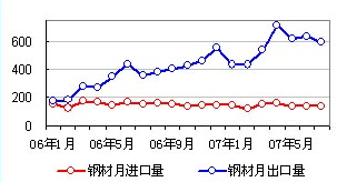3)中国钢材进出口变化趋势是历史性的,还表现在具有明显的时代阶段性特征上。尽管2007年我国还会保持良好的进出口态势,但出口增长的势头将明显回落,今后会在一个合理的范围中稳定下来。