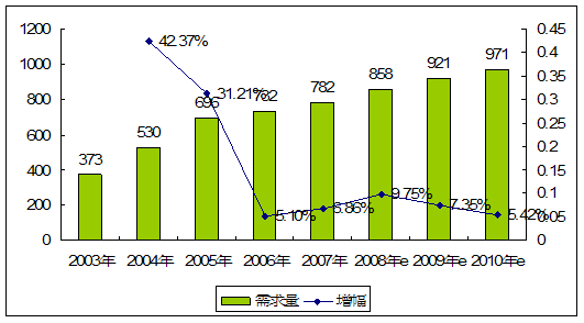 | 年份 | 需求量 | 增幅 |