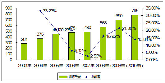 | 年份 | 消费量 | 增幅 |