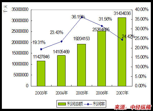 2003年至2007年,我国造纸 行业 中企业数量由5541家增加到8272家,而亏损企业占比却由2003年的18.55%减少到16.45%, 行业 发展势头良好。2003年至2007年造纸 行业 的利润总额也由11427846千元增长到31434036千元。