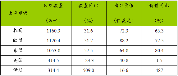 2007年我国对主要市场钢材出口情况