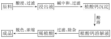 2)制取植酸:将植酸钙酸溶,除去钙、镁、氯及磷酸根等离子及不溶性杂质,再用活性炭吸附脱色,最后在60℃以下浓缩得所需浓度的植酸。