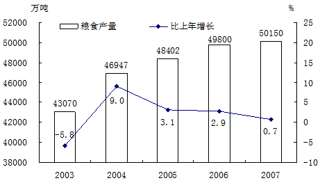 2003-2007年我国粮食产量及其增长速度