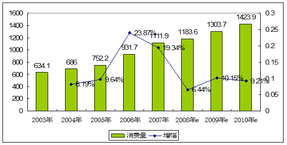 2003-2010年我国电动移液器产品消费量 分析 及预测表