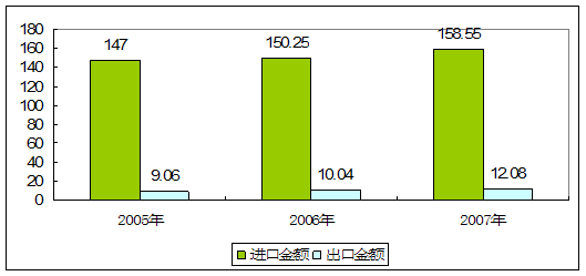 2005-2007年我国电动移液器产品进口数量在不断减少,但是进口金额在不断提高,说明了我国电动移液器在高端产品(价格高)的进口上呈现上升的趋势,出口方面,我国电动移液器产品出口量逐年增加,说明了我国近几年电动移液器产品有了较大的发展,产品技术水平也有了较大的提高。