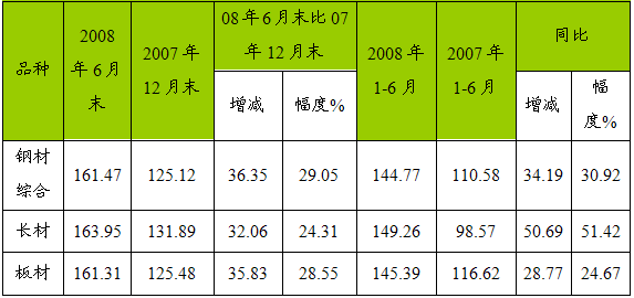 2008年上半年,我国国民经济继续保持平稳较快发展,由于钢铁生产增速回落,国内钢材市场呈现需求旺盛、供需基本平衡状态。受原燃材料价格大幅上涨、国际市场价格高位影响,国内钢材价格呈持续上升态势。