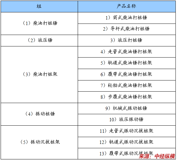 桩工机械产品组划分表