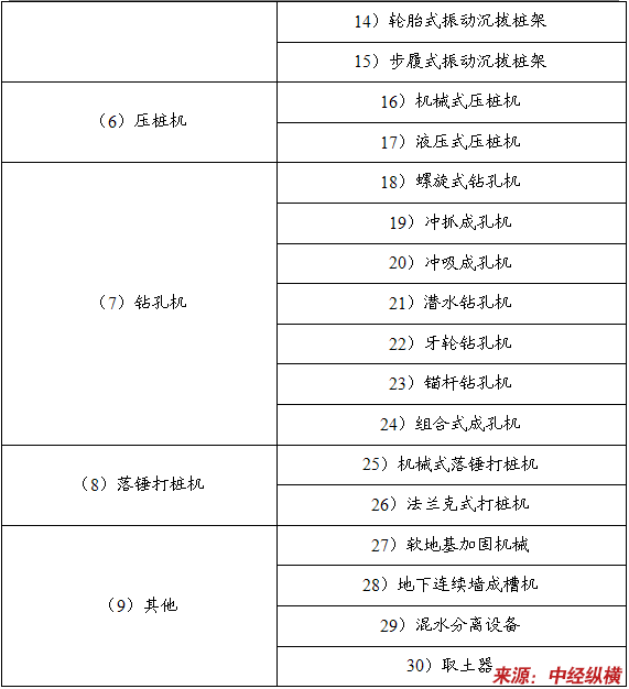 桩工机械:柴油锤、液压锤、振动锤、钻孔机、打桩机、拔桩机、静压桩机;