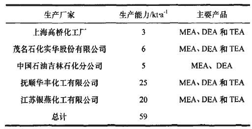我国乙醇胺生产主要集中在上海高桥化工厂,茂名石化石化股份、中石油吉林石化、抚顺华丰、江苏银燕5家公司。