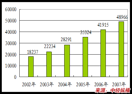近年来,我国固定资产投资的高速增长推动钢材需求迅速增加,进而推动钢铁产能规模的快速扩张。从2001年开始,我国钢铁 行业 产能扩张开始加速,每年新增产能不断提高。2002~2006年是钢铁 行业 固定资产投资增长较快的时期。从 行业 的投资特点来看,产能释放主要集中在2004~2008年,其中2004年~2006年每年新增的粗钢产能均超过5000万吨。截止到2006年底,国内粗钢产能达到41914.9万吨,同比增长18.7%。2007年,国内粗钢产能达到48966万吨,同比16.8%。