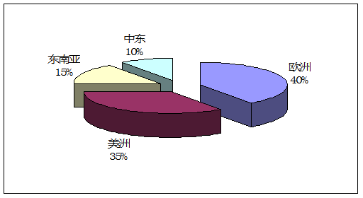 目前,硬盘播放器产品,进口方面,中国是最重要的生产国,没有进口量;而出口方面,海关没有具体的出口量数据,但是可以确定我国硬盘播放器出口的主要市场是欧洲、美洲,东南亚、中东,下面是初步估算的出口所占的份额。