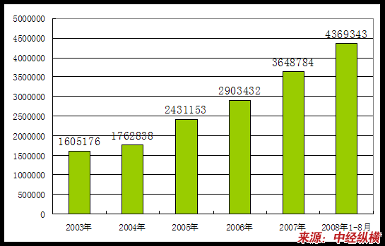 一、2003-2008年1-8月照明灯具 行业 生产情况