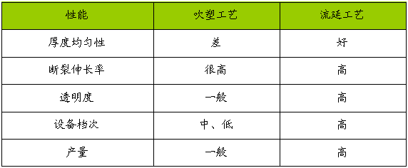 吹塑工艺和流延工艺生产的薄膜性能及所需设备对比