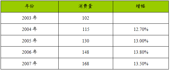 2003-2007年LLDPE自粘缠绕膜消费量统计