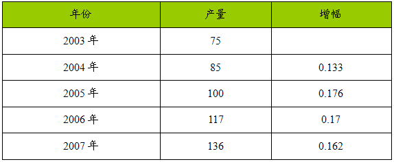 2003-2007年LLDPE自粘缠绕膜产量统计