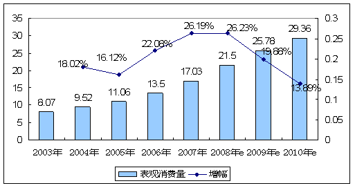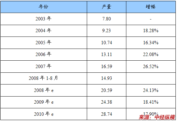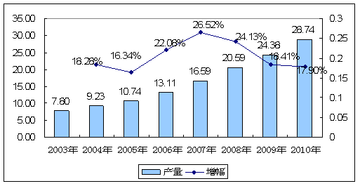 2003-2010年我国直埋管产品产量 分析 及预测表