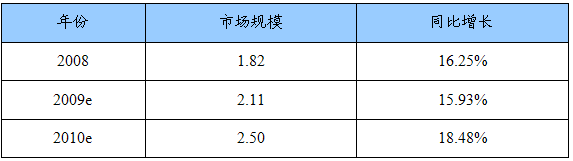 预计未来纸牌机市场需求呈缓慢增长态势,这主要由于产品市场难以得到有效扩大,再加上娱乐产品本身市场需求就有限,预计到2010年纸牌机市场规模达到2.5亿元, 市场发展 潜力巨大。