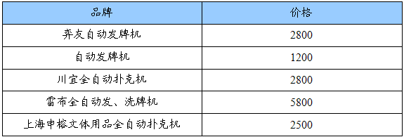 从部分纸牌机的报价来看,其价格都在2000元以上,预计随着技术的不断成熟,未来纸牌机的功能将更多,价格不会有很大的变化。