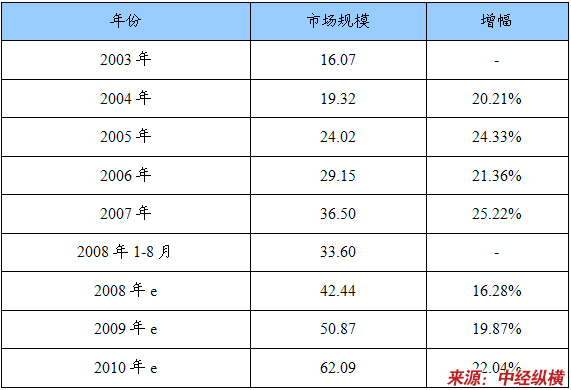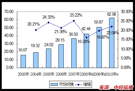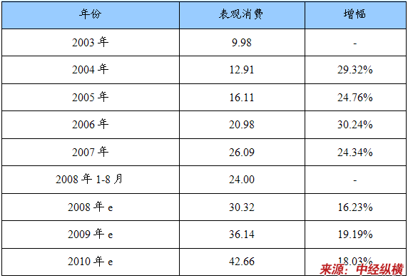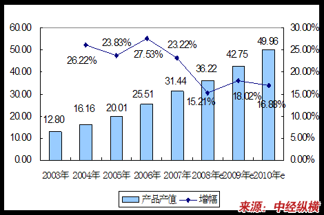 2003—2010年纸筒芯产品产值 分析 及预测表