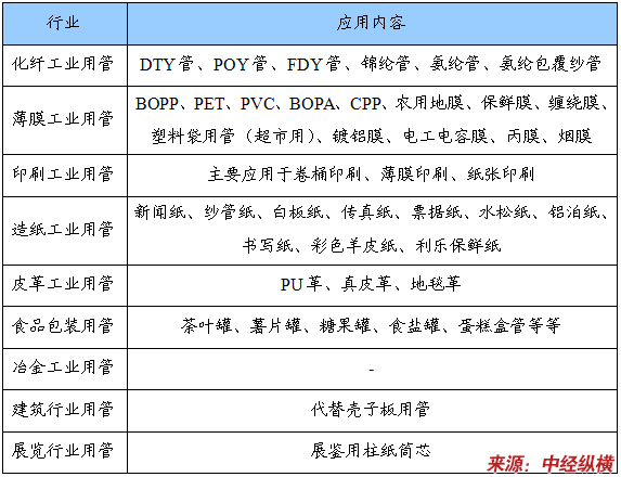 中国经济在发展,纸筒芯的消费领域越来越广,消费量也越来越大,根据 行业 应用将纸筒芯分类如下: