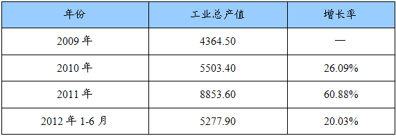 2009-2012休闲食品 行业 工业生产总值增长情况统计表