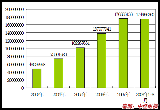 其中,2008年7月份单月我国出口煤478.4万吨,同比下降16.8%,环比下降31.6%,出口平均价格为124.8美元/吨,上涨7.7%。