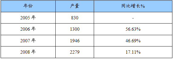 原因之一是得益于中国得天独厚的氧化铝原料优势,原料充足。我国具有较丰富的铝土矿资源,迄今已探明保守储量23亿吨,位居世界第4,具备发展氧化铝工业的资源条件。作为原铝的原材料氧化铝,其产量也创出历史新高。我国氧化铝产量2009年10月达241万t,月度同比增速达到15.1%。1~10月累计氧化铝产量1901万t,同比减少2%,从氧化铝和原铝的累计降幅比较看,氧化铝累计降幅小于铝锭降幅。氧化铝产量降幅小于铝产量降幅的原因是,在经济恢复增长之时,终端消费对经济的反映更迅速,铝材产量增速最迅猛。正是由于终端消费快速增长后,开始拉动上游原料供应随之快速增长,可见铝产业链中需求导向的特征更加突出。而在原料供应环节上,氧化铝生产所需周期相对较短,产量恢复速度要快于原铝产量恢复速度。这为我国人造蓝宝石产业提供了丰富的原料供应。