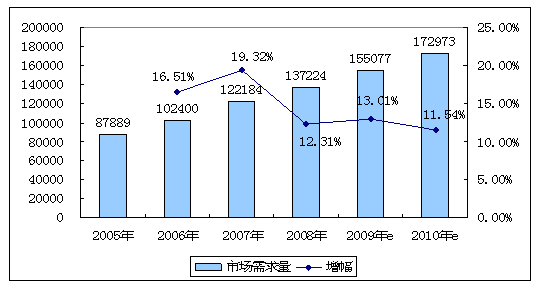 未来随着国内活性氧化铝生产规模的不断扩大, 行业 市场需求将得到进一步的发展,根据未来 行业 市场发展 前景,预计到2010年,国内市场活性氧化铝的市场需求量将达到17万吨。