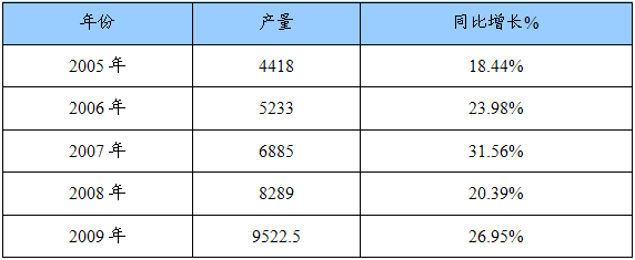 2005-2009年仪器仪表 行业 产值增长情况统计表