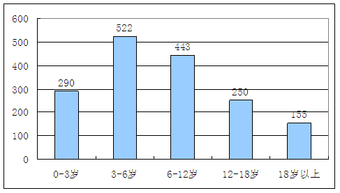 其中,我国内地自l995年6月至2003年8月共有l660例患者接受手术。患者中男963名,占58%,女697名,占42%。患者年龄分布见下图,以3~l2岁儿童居多。