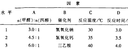 36%的甲醛50mL加入50mL水稀释,置于四口烧瓶中,搅拌冷却至15℃以下;将催化剂于15rain内缓缓加入,控制反应温度在20℃以下;将98%的丙醛15mL缓缓加入,在设定温度下反应3h。达到反应要求后的反应液用甲酸进行中和滴定,使pH值降低到7.5左右。中和后的反应液减压浓缩除去大部分水,转入分液漏斗每次用戊醇40mL4次萃取反应液,然后合并萃取液.再减压蒸馏浓缩至有晶体出现,用乙酸乙酯在低温条件下重结晶。得到反应产物。